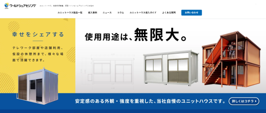 ワールドシェアセリングは、譲渡付きレンタルユニットハウス「Yourハウス」を提供する業者です。